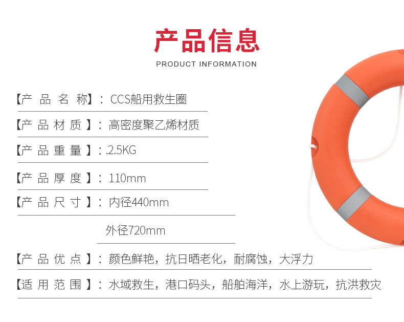 商品名称:船检包过救生圈大人专业船用专业实心泡沫儿童成人游泳圈实心防汛救生圈【2.5KG带CCS证救生圈】